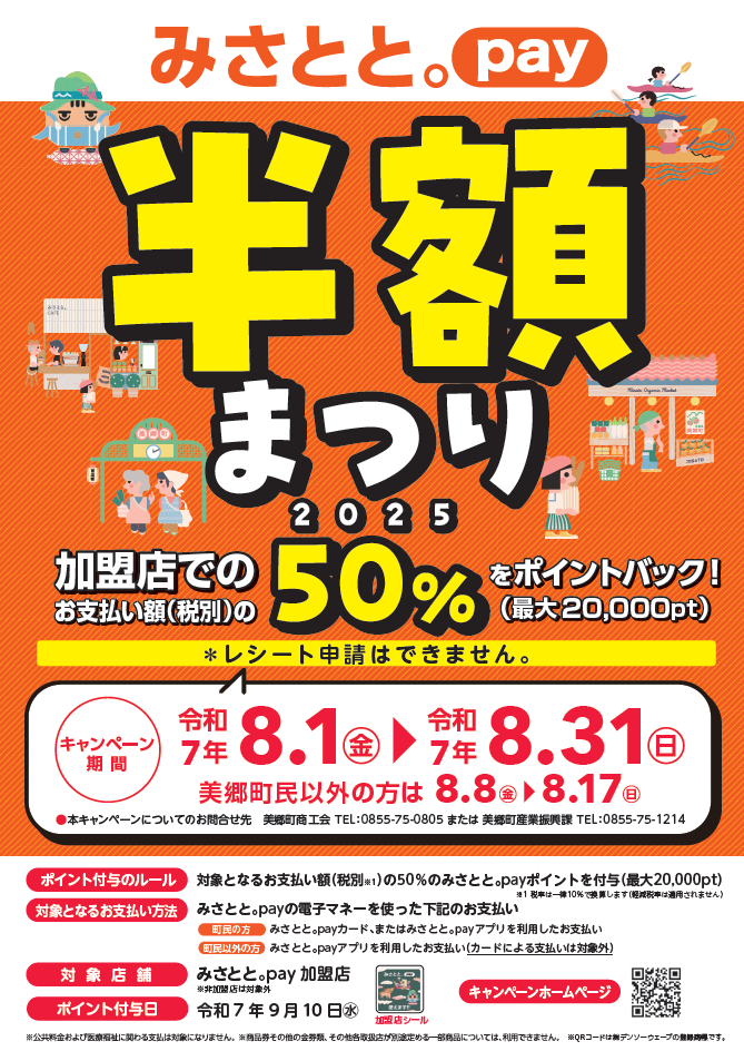 - 町民(小学生以上)は自動的にみさとと。payカードを付与。